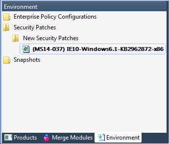 - On the Home tab, open the Environment tree and select either the Security Patches group or one of its subgroups.