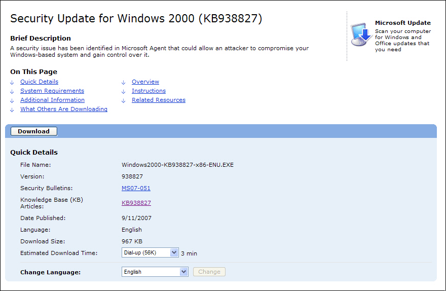 3. Click the link in the Bulletin ID field. The Security Bulletin for that patch opens. In this example, Security Bulletin MS14-037 opens: