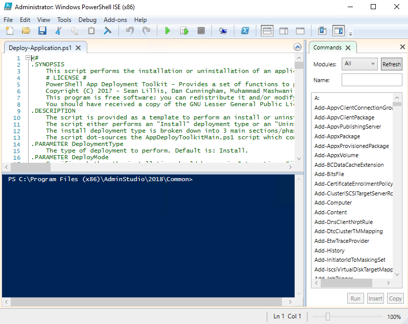 • If you selected the Edit script on wrapping option, the Windows PowerShell ISE application opens and you are prompted to edit the PowerShell script file that you just created.