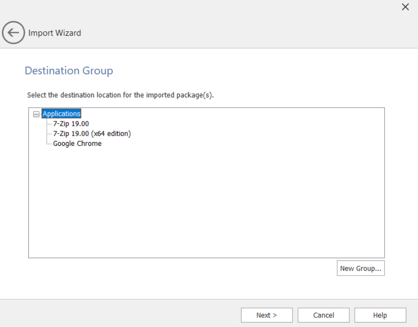 If you launched the Import Wizard by selecting a group in the tree and then clicking Import, that group will be selected by default on the Destination Group panel