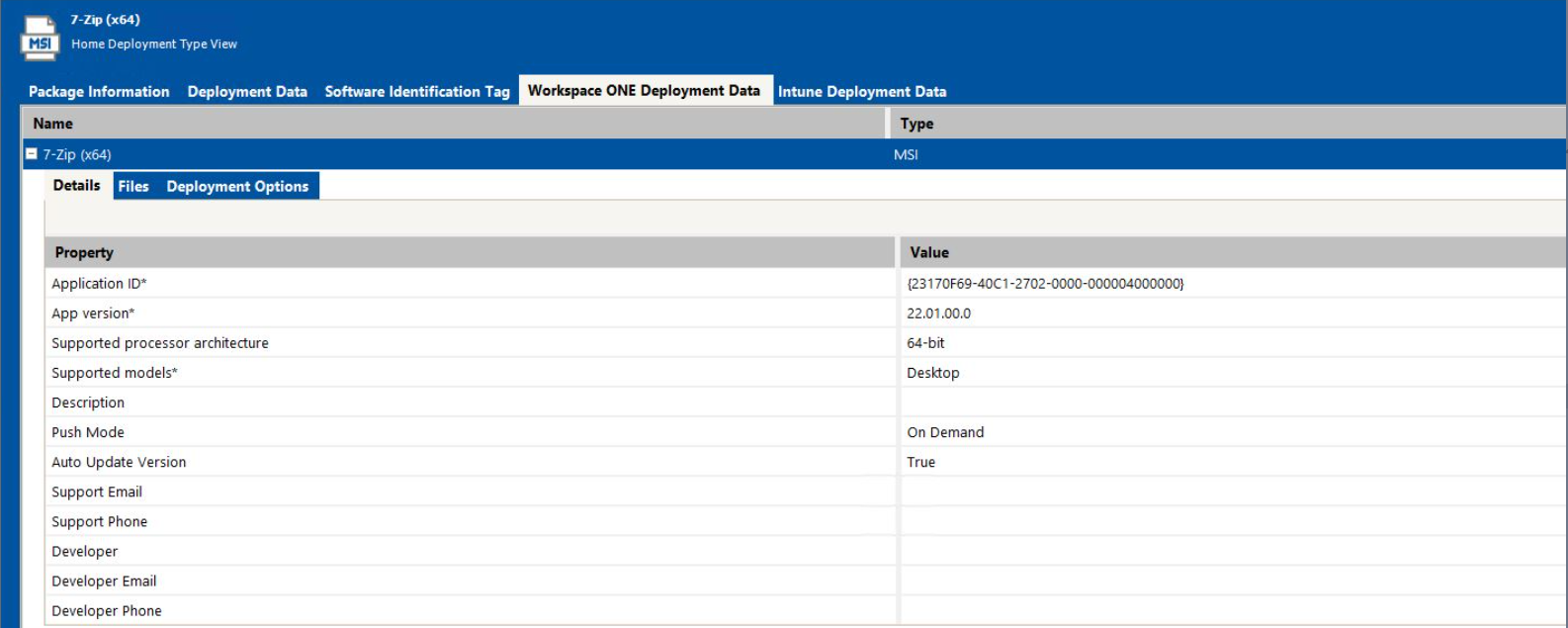 - Click the Workspace ONE Deployment Data tab and open the Details subtab.