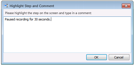 • Add Comment—Click to pause the recording and open the Highlight Step and Comment dialog box where you can enter a comment. This comment will appear in the generated output file.