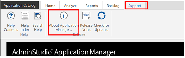 In Application Manager, click on the About Application Manage ribbon button in the Support tab to launch the About Application Manager dialog.